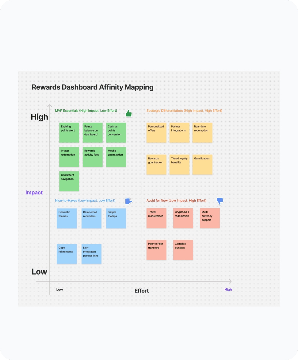 As evidence accumulated, the challenge became prioritization rather than ideation. I led a cross-functional working session aligned product, engineering, and design on where clarity would have the greatest impact.