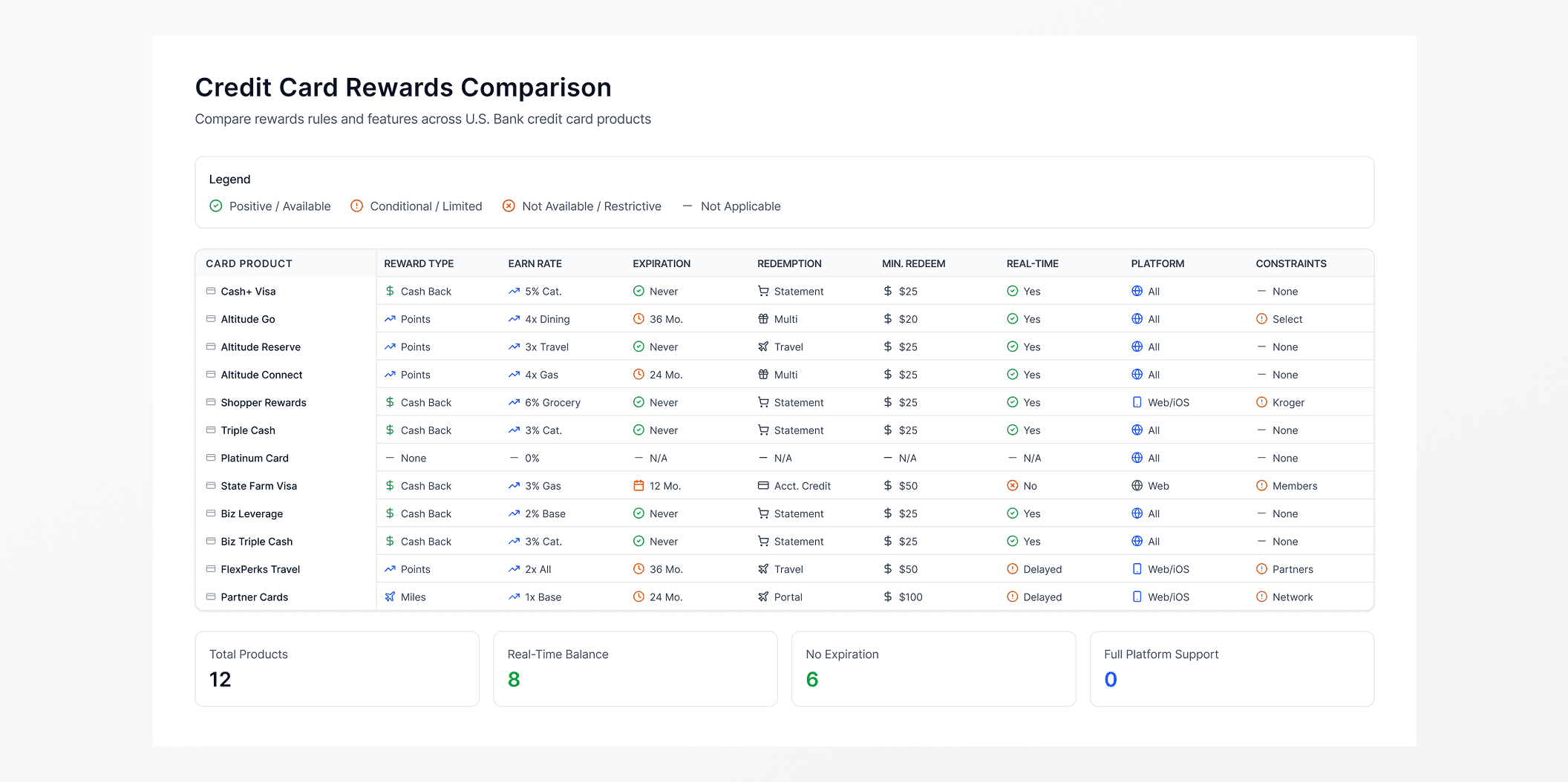 While competitors varied in execution, the strongest experiences consistently reduced cognitive effort at redemption reinforcing the decision to focus on clarity over flexibility in the U.S. Bank experience.