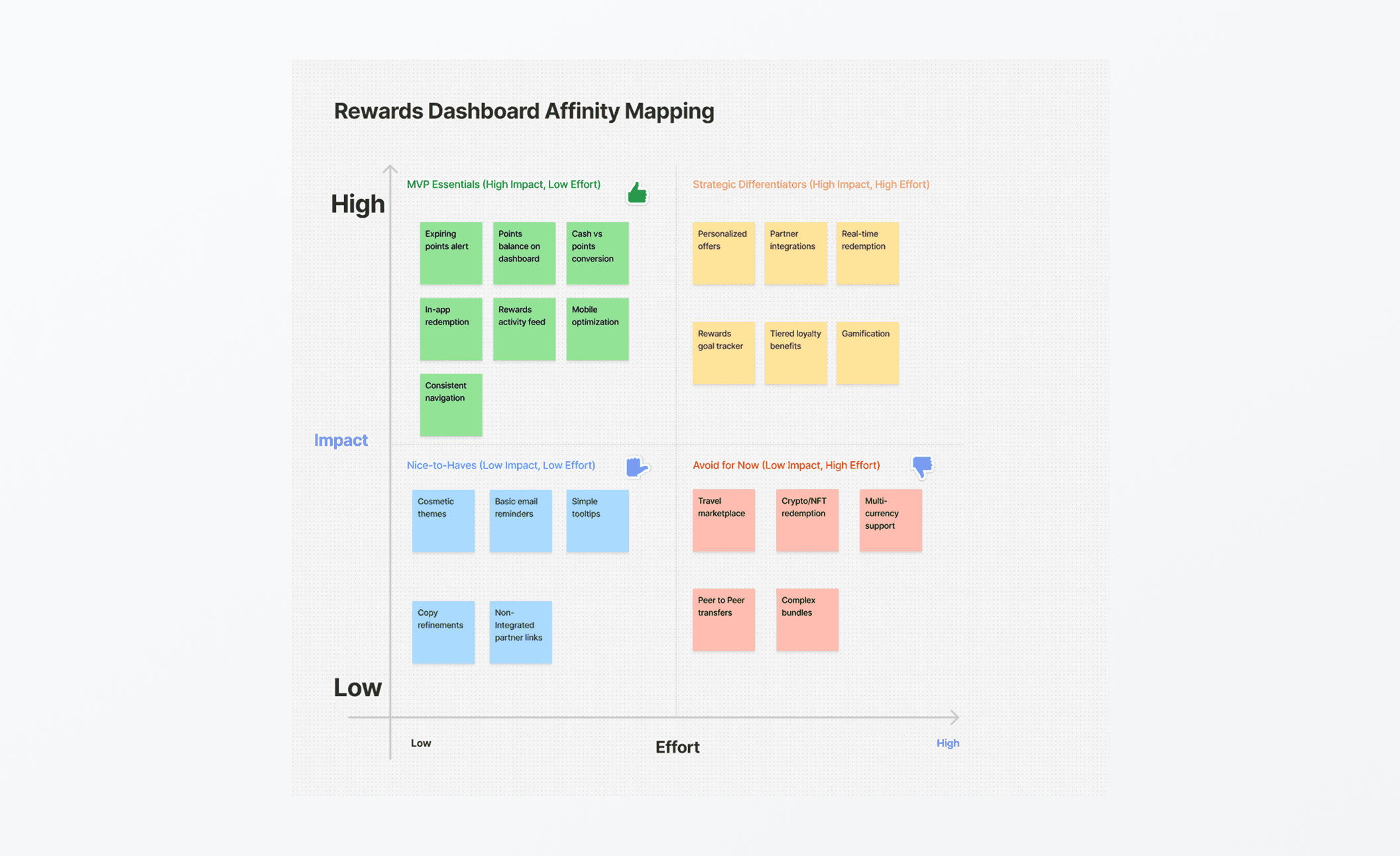 As insights emerged, the challenge shifted from what was broken to what we should prioritize first. Rewards complexity touched multiple systems, card products, and technical constraints making alignment critical before moving into deeper design exploration.